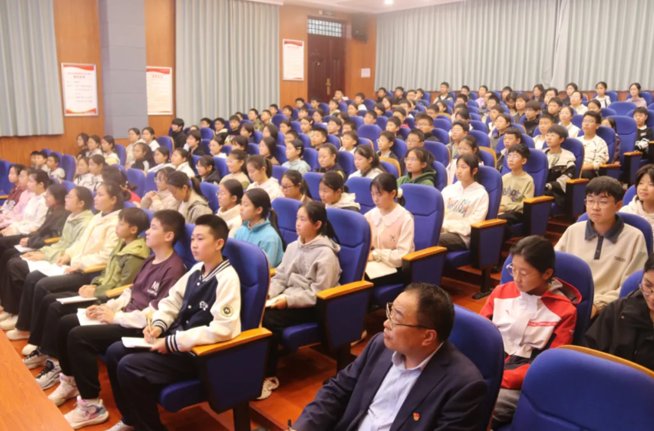 为切实加强青少年安全意识教育,厚植爱党爱国情怀。2025 年 10 月 16 日,灵宝市实验初级中学学术报告厅内氛围热烈,由灵宝市关工委、灵宝市教体局关工委联合主办,我校承办的灵宝市关工委德育法治报告会顺利举行。七年级部分师生齐聚一堂,认真聆听两位专家嘉宾带来的精彩宣讲,共同接受了一场兼具实用性与思想性的教育洗礼。