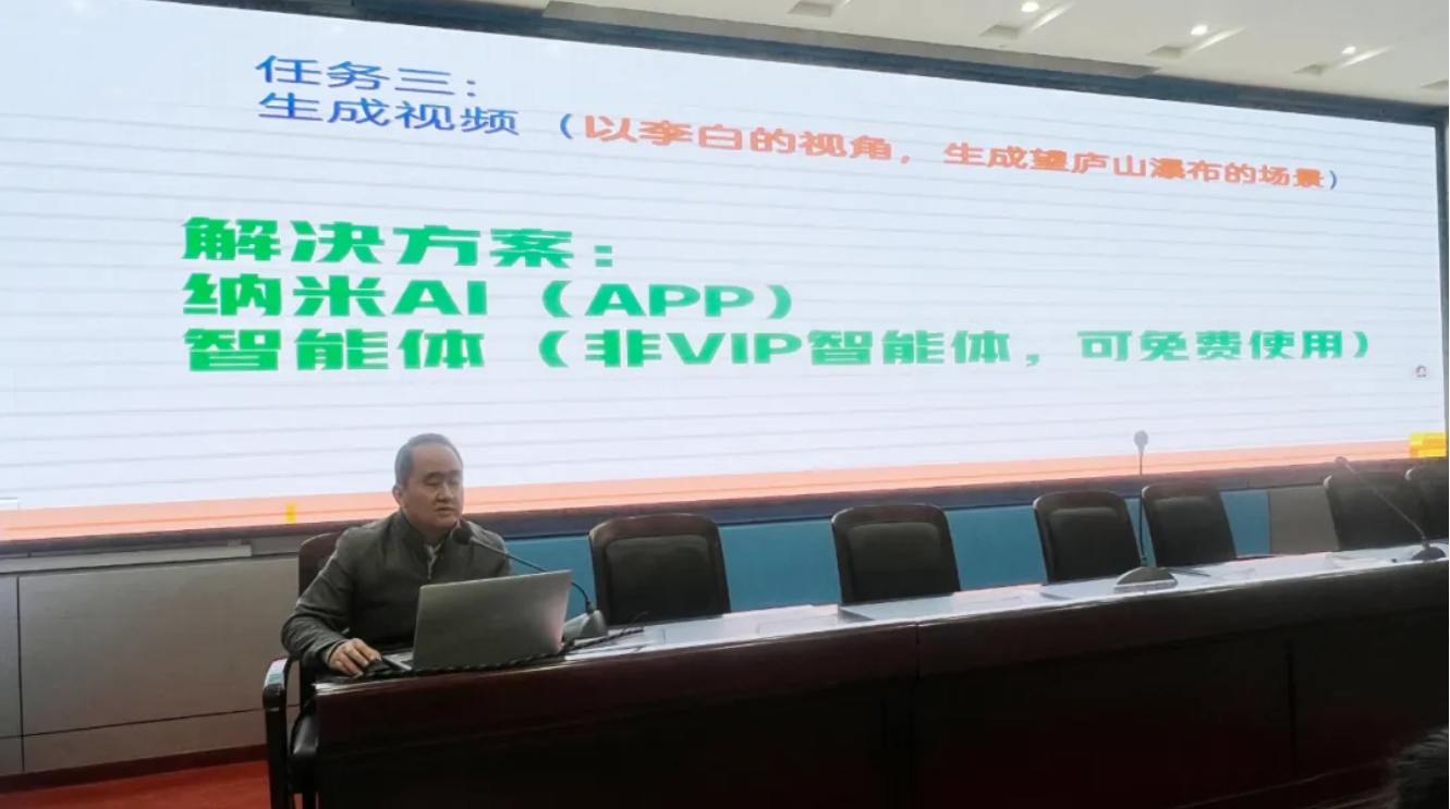 当晚,报告厅内座无虚席,学习氛围浓厚。我校信息技术教师何国琛担任主讲,系统讲解了AI技术在备课、授课等环节的应用。