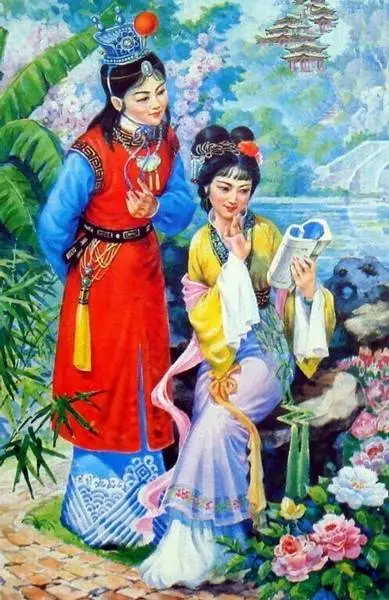 年画中还有很大一部分取材于历史事件、民间故事、神话传说、笔记小说以及戏曲等。这类年画常见的有《三国演义》《西游记》《水浒传》《红楼梦》《白蛇传》《牛郎织女》等。人们往往通过这类题材增长了知识,并接受了传统的道德教育。