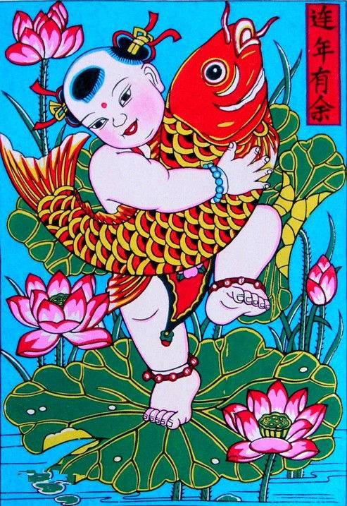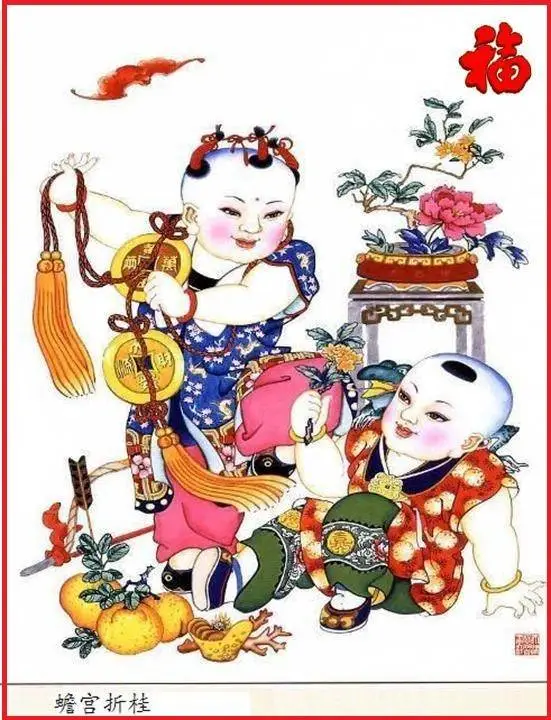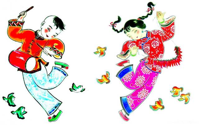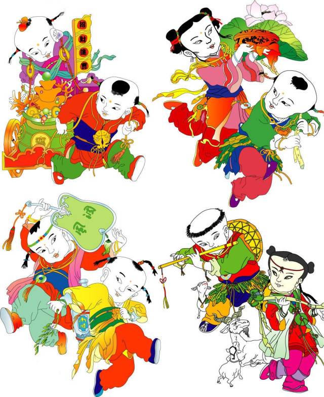 民间年画大多采用大红大黄等鲜艳火爆的色彩,注重情趣和造型的表现,人物生动可爱,富有活力。体现了民众智慧,形成了博大精深的传统文化。