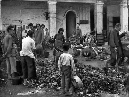 春节购物成了一年中最为艰辛的工作。在大年夜的前夕,人们必须长时间排队才能买到一点可怜的食物。1977年,毛去世后的第一个春节,厂里的同事Y特地放弃了自家的需要,陪我一起在嘉善路菜场通宵排队。由于肉摊和鱼摊过于混乱拥挤,我们只能指望从限量供应的“盆菜”摊那里获取资源。盆菜的供应方法是每个排队者一份,多一个人,就意味着你能多得一份稀缺的食物。
