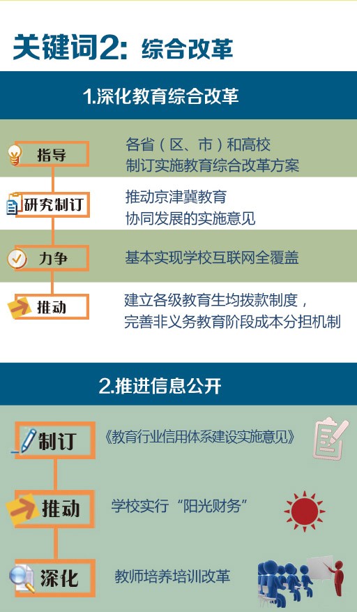 2015年,教育领域将会推出哪些重大改革,哪些改革可能会影响到你?在2015年全国两会召开之际,中国教育报小编向各位老师、家长细数看懂2015年教育改革的七个关键词,让你准确把握2015年教育改革动向。