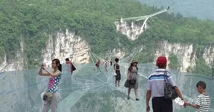 张家界建了一个号称世界最长、最高的全透明玻璃桥,据说桥面距谷底约300米,可站800人,你敢站上去么~