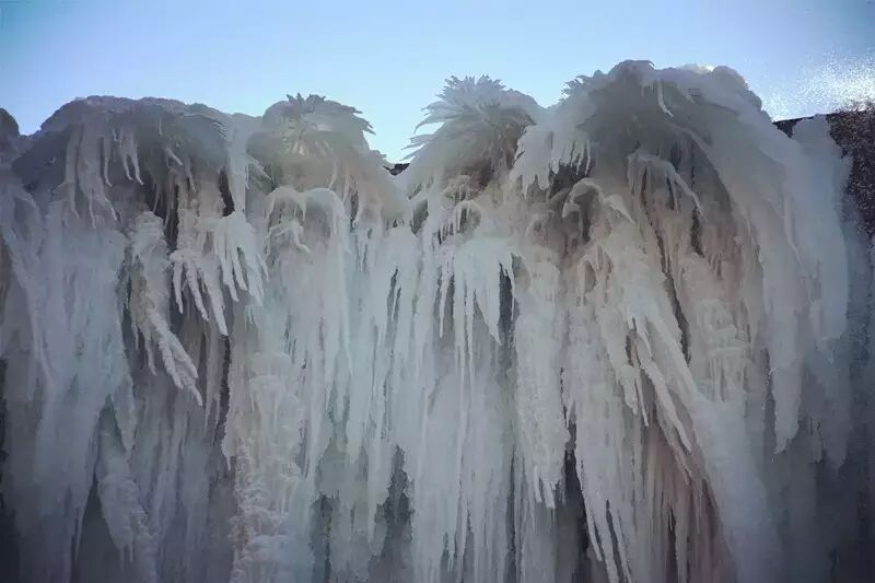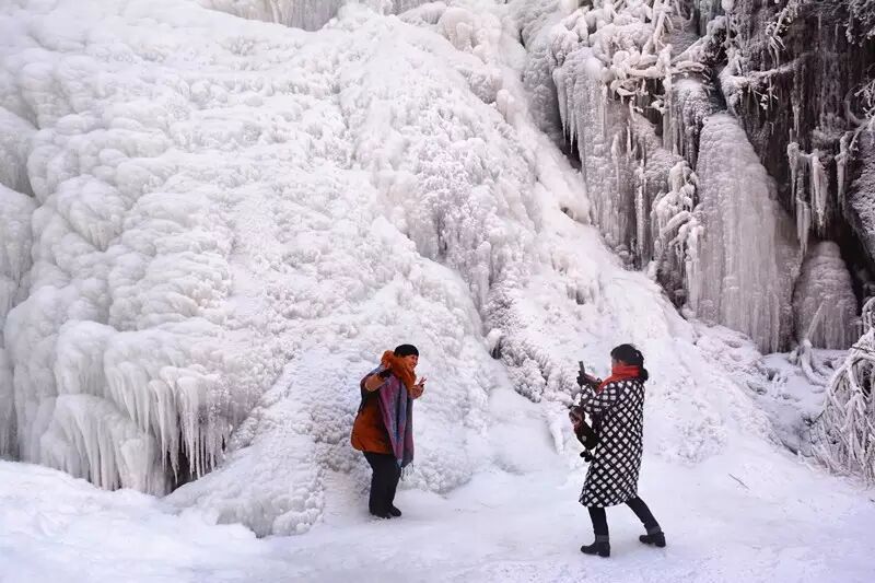 连日来,灵宝市阳店镇凤凰峪里二三十米高的冰挂悬立,冰瀑飞滚,峪底晶莹剔透,冰花玉树,琼楼玉宇,千姿百态,恍若仙境,引得远近游客慕名观光游览。