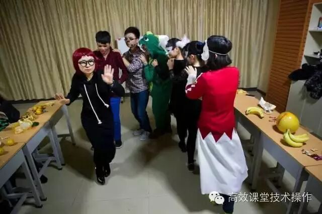 一高中国际班的学生在老师LISA的带领下进行万圣节游戏。这些学生在这个班上主要学习外语,将来会通过各种渠道进入外国上大学。