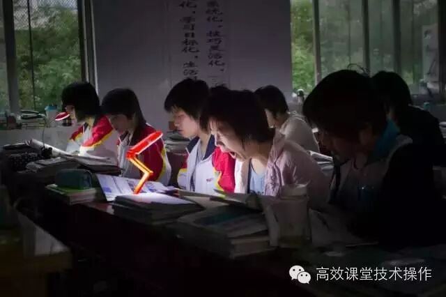晚上10点35分是学校寝室熄灯,高二学生借着两盏充电台灯的光亮继续学习。
