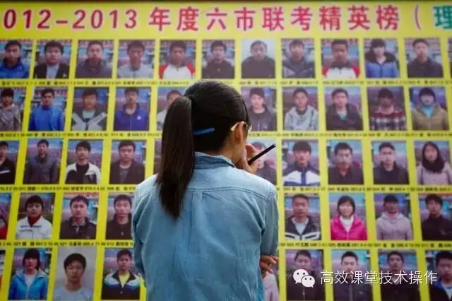 一位女生站在学校张贴的六市联考精英榜前。高三阶段,为了应对高考,学校常会组织各种类型密集考试,在走上高考的正式考场前,学生们早已是身经百战。
