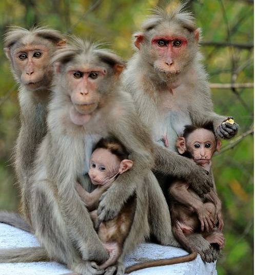 小猴们也是很爱美的呢~看这一个个花枝招展的!