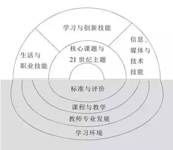 2002年美国制订了《“21世纪素养”框架》,2007年发布了该框架的更新版本,全面、清晰地将各种素养以及它们之间的相互关系呈现出来(见图1)。