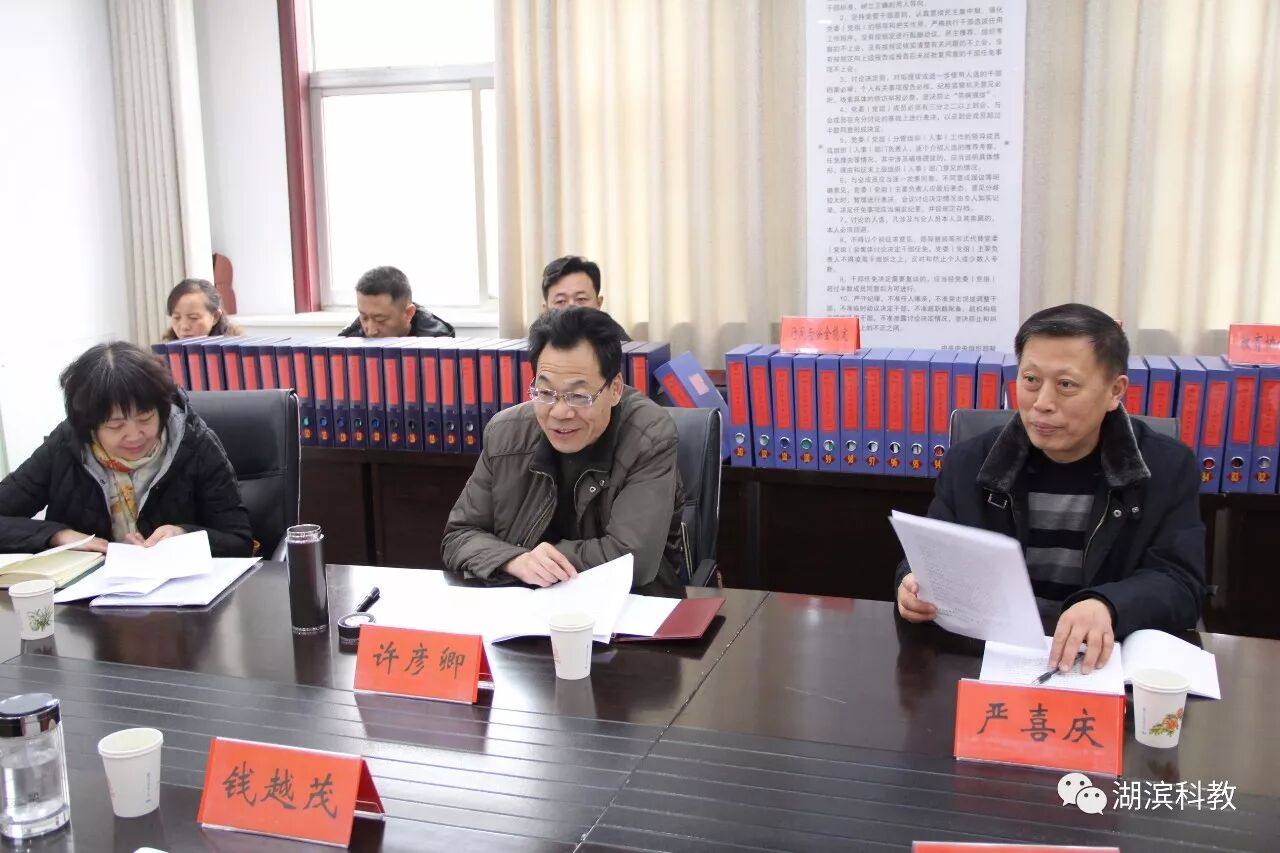 1月17日,三门峡市教育局副局长许彦卿带领市教育局2017年度教育工作目标第一考核督查组成员市教育局督导室主任严喜庆、安全法制科科长智建芍、基础教育科张东来到湖滨区,考核督查我区2017年度教育工作目标完成情况。区教科体局领导班子成员、机关各股室及二级机构负责人参加了汇报会。
