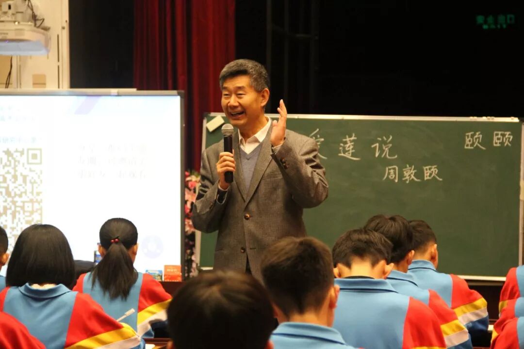 九点半钟,魏书生老师在热烈的掌声中走上讲台,他的报告主题为《语文教育的民主与科学》。魏老师从儒家经典《大学》的第一句话开始,谈什么是教育的常识和根本,怎样抓住根本不动摇、不懈怠、不折腾。在他看来,教育的根本就是“大学之道”,即“明明德,亲民,止于至善”。不动摇就是自强不息,厚德载物;不懈怠就是踏踏实实地在听、说、读、写训练中丰富学生,成长自己;不折腾就是满怀谦卑地面对问题,积累再积累;就是发现、发掘学生的闪光点,帮助他们守住,然后慢慢提升……这些就是语文教育的民主和科学。他用“盘锦经验”和大量事例告诉大家,应试、分数只是个附加问题,只要把根本做好了就会水到渠成。