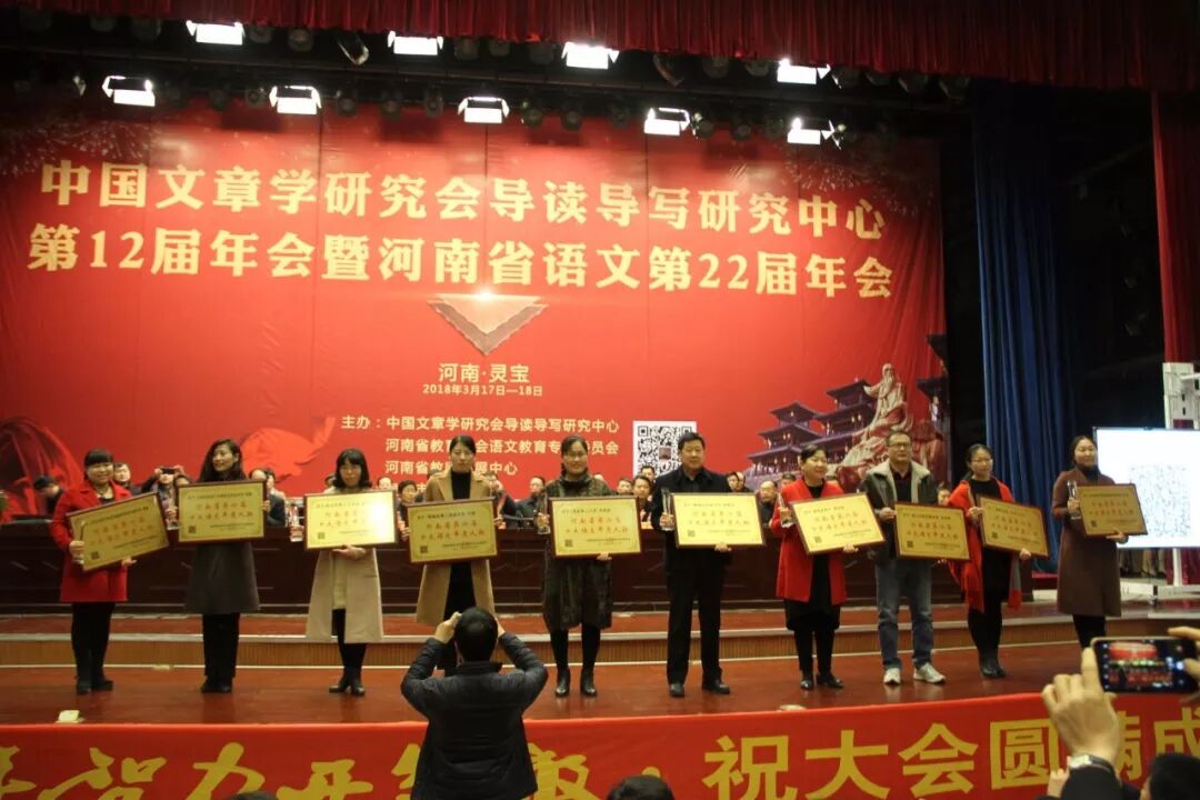 大会为河南省第六届十大语文年度人物、十佳语文教师、十佳语文教改之星、十大推动语文教育发展卓越校长、推动语文教育发展卓越局长等颁发了奖牌和奖杯。我市教研员黄敏和赵飞燕荣膺河南省第六届十大语文年度人物;实验小学张百红、尹庄实验学校赵黎明被评为河南省第六届十佳语文教改之星;市一中强红瑞被评为河南省第六届十大推动语文教育发展卓越校长;市五小张娟梅被评为“文心杯”全国第二届十佳小学作文教改之星;市二中张东强被评为“文心杯”全国第二届十大推进作文教学卓越校长;张少波被评为河南省第六届推动语文教育发展卓越局长。大会同时向灵宝市教体局颁发了承办纪念牌。