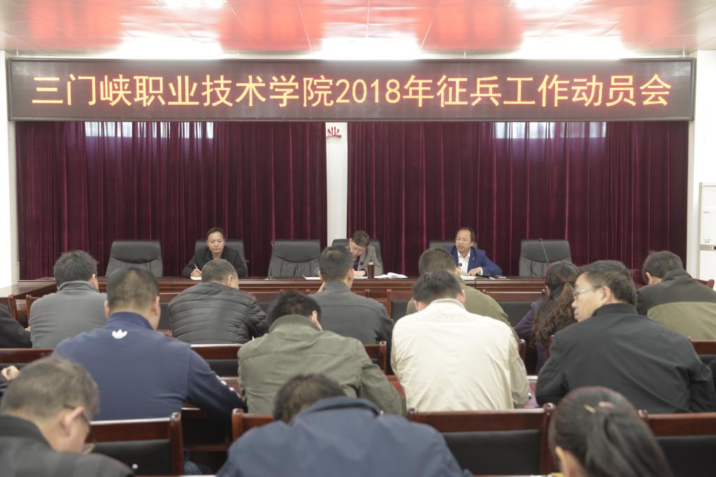 4月9日,三门峡职业技术学院在荣誉室召开2018年征兵工作动员会。各院部主管学工副院长、学生科长和征兵工作联络员参加了本次会议。会议由学生处处长黄世谋主持,副校长马旭东出席并讲话。