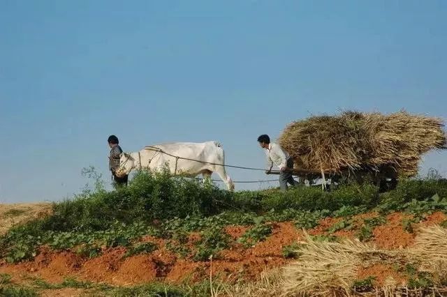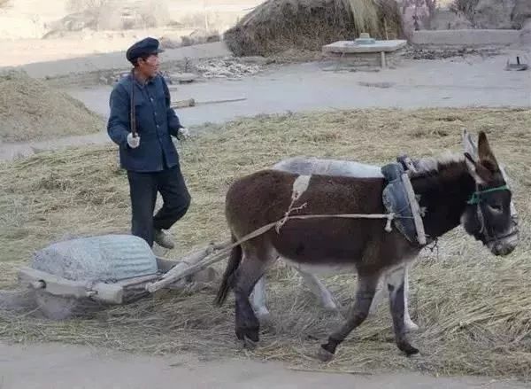 手持牛鞭的父亲指挥着拉磙的老牛,