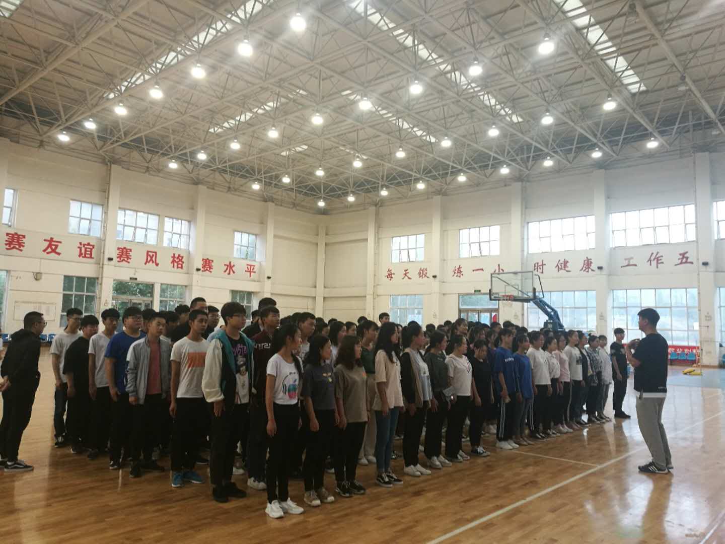 6 月9日—10日,第十期素质拓展训练在我校素质拓展基地顺利开展,经济管理学院一百五十余名学生参与了此次训练。学生处副处长曲扬、经济管理学院院长齐天峰出席了开营仪式,在素质拓展基地顺利完成培训。我校国家级素质拓展教练李磊、张春峰、苗亚坤、李晶担任本次素质拓展导师。齐天峰致开营辞并宣布开幕,他要求学生要珍惜这次机会,遵守时间,加强纪律观念,服从导师管理。
