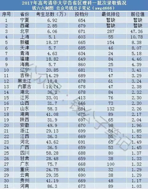 上北大机会仅次于天津的,竟然是投档分最高的浙江(699分),很多人肯定没想到。浙江考生人数不及广东一半,又处于经济发达地区,享受的贫困生优惠名额少,怎会录取200人之多?这是因为浙江有着浓厚的奥赛传统,每年在全国奥赛中获奖的学生数量名列前茅,获得保送、降分录取的考生数量众多。