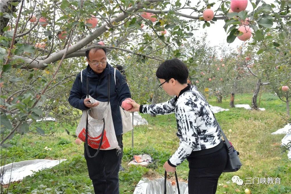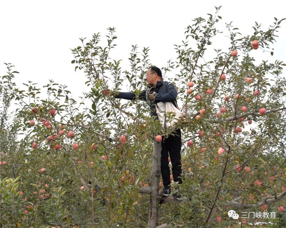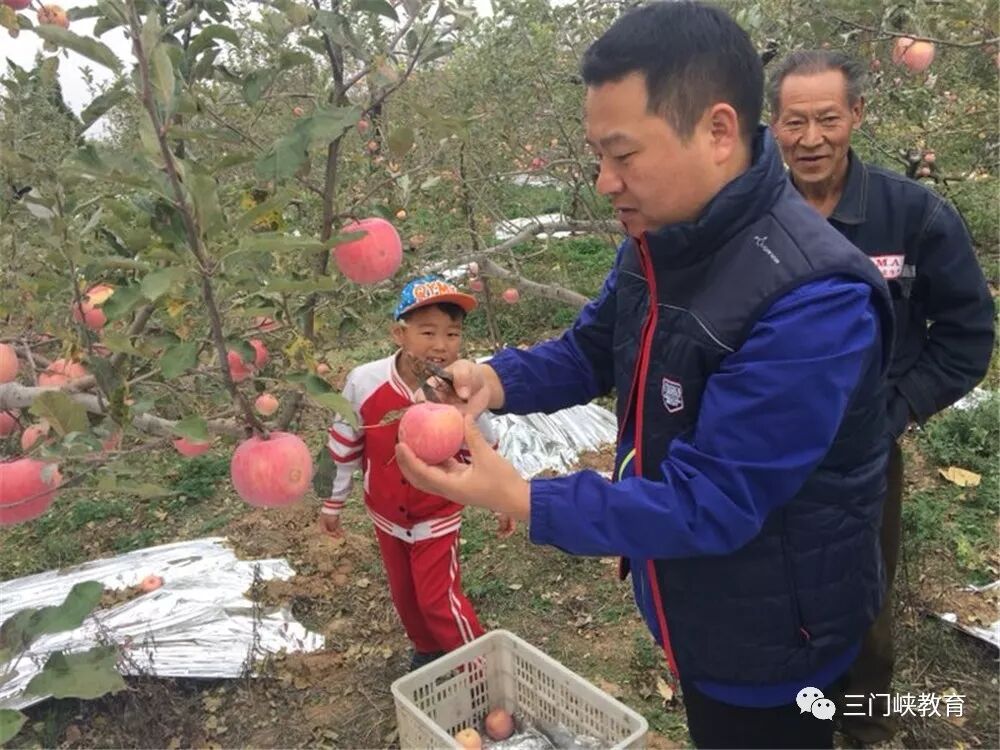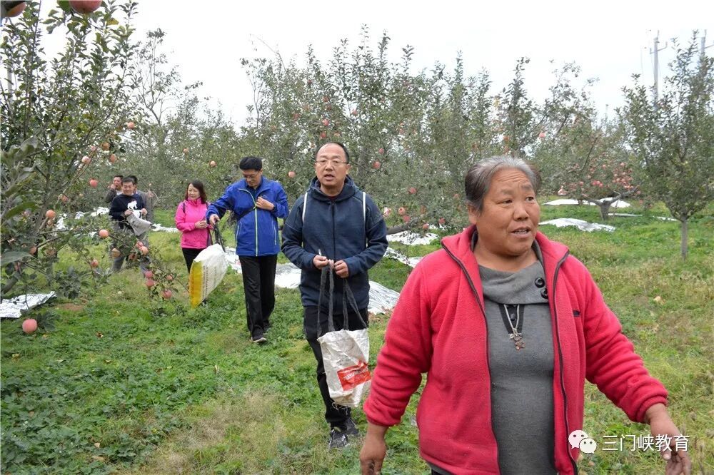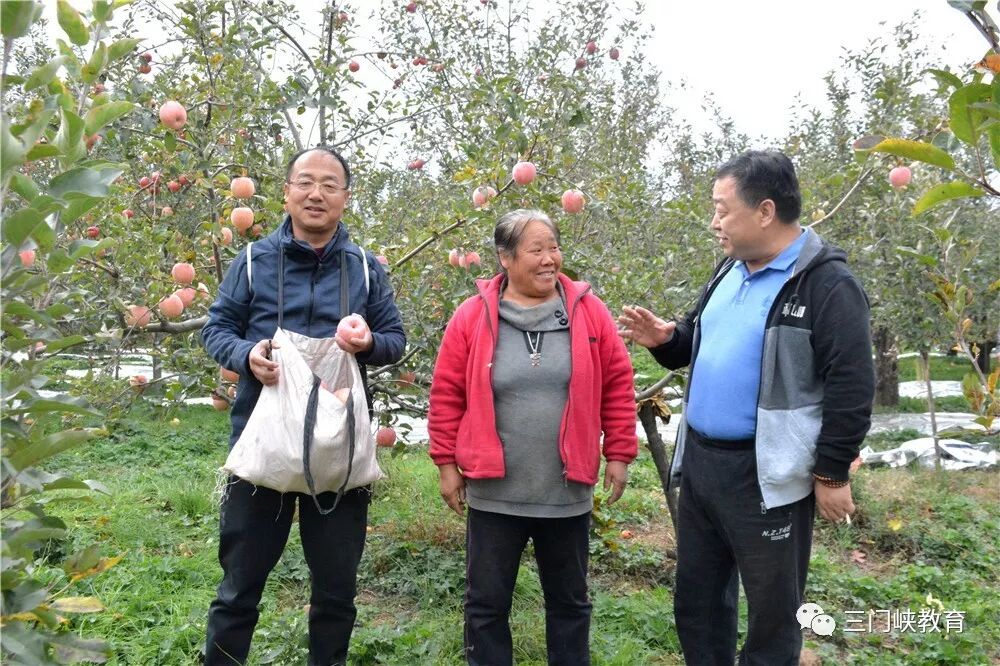 “大爷,今年咱这块地大概能产多少斤?能卖多少钱?”2018年10月13日上午十一时许,地处豫西深山区的河南省灵宝市五亩乡孙家岭村张引东果园里,作为对口帮扶责任人,三门峡市教育局副局长高超杰一边小心地采摘着苹果,一边和户主亲切地攀谈。在他的周围,一棵个头硕大、色泽鲜艳的红富士树前,9名来自同一单位的帮扶干部们分立多位,摘、剪、装、量,忙而有序,果园内不时荡起一阵阵笑声。