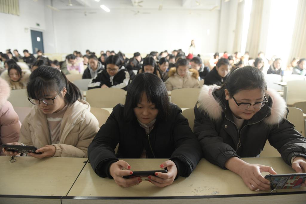 师范学院学生用手机观看庆祝改革开放40周年大会