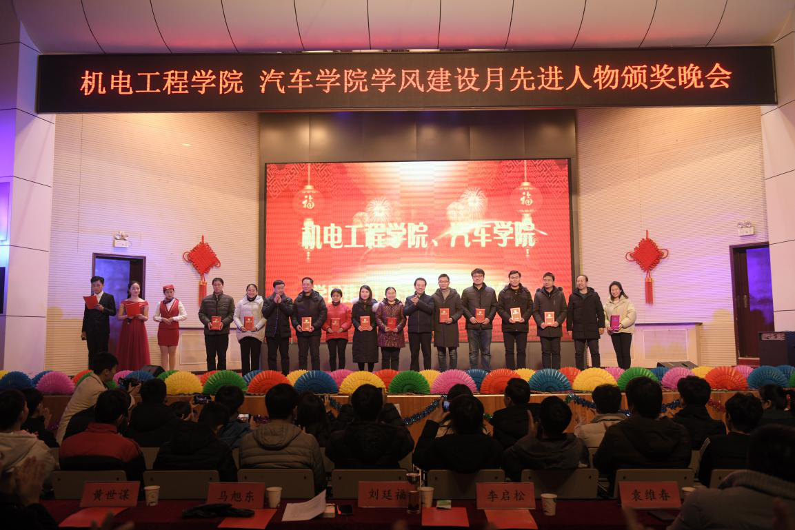 为进一步提升学风建设水平,表彰在学风建设主题月活动中涌现出来的先进人物,2019年1月2日晚,机电工程学院在学术报告厅隆重举行2018年学风建设月先进人物颁奖晚会。学院党委书记刘廷福参加颁奖晚会并为获奖选手颁奖。学院党委委员、副院长马旭东,院长助理李启松,党政办公室主任雷旭锋,学工部部长、学生处处长黄世谋,科研处处长陈玮,招生就业办主任王波,团委书记王静宇,教务处副处长马建明,学生处副处长刘学文等领导出席颁奖晚会,机电工程学院师生代表和印度尼西亚留学生欢参加晚会。