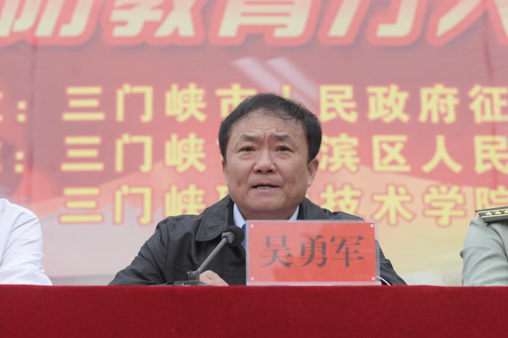 活动由市征兵办副主任、三门峡军分区动员处处长吴刚立主持。下午3时整,活动以全体人员奏唱《国歌》开始,重温了《习近平给南开大学新入伍大学生回信》内容精神。吴勇军在致辞中说,征集高校大学生入伍是加快军队国防现代化建设,实现强国梦、强军梦的一项重要举措。三门峡职业技术学院始终把征兵工作与学院人才培养工作紧密结合,全院大学生应征入伍呈逐年上升趋势,多次被省政府、省军区评为“征兵工作先进单位”,特别是2018年,大学生应征入伍206人,位居全省142个高等院校第二位,完成比例高达196.16%。他希望广大青年朋友,把爱国情怀转化为参军报国之志,积极报名参军,争当磨砺成才的模范、甘于奉献的模范和履行义务的模范,用青春和热血谱写人生最壮丽的秀美诗篇。