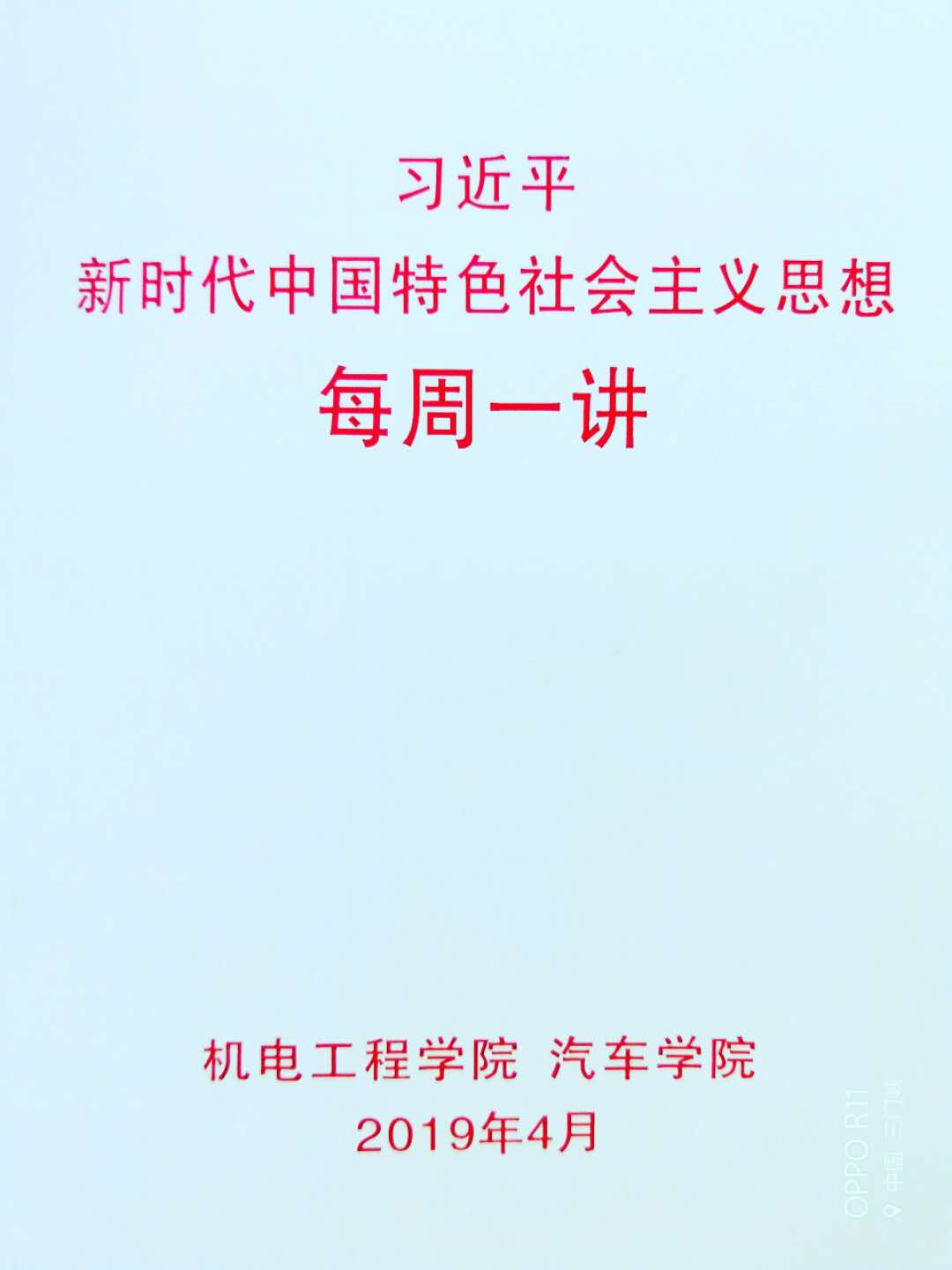 近日,由机电工程学院(汽车学院)组织编辑的《习近平新时代中国特色社会主义思想每周一讲》正式印发。