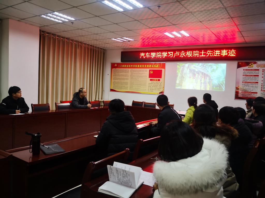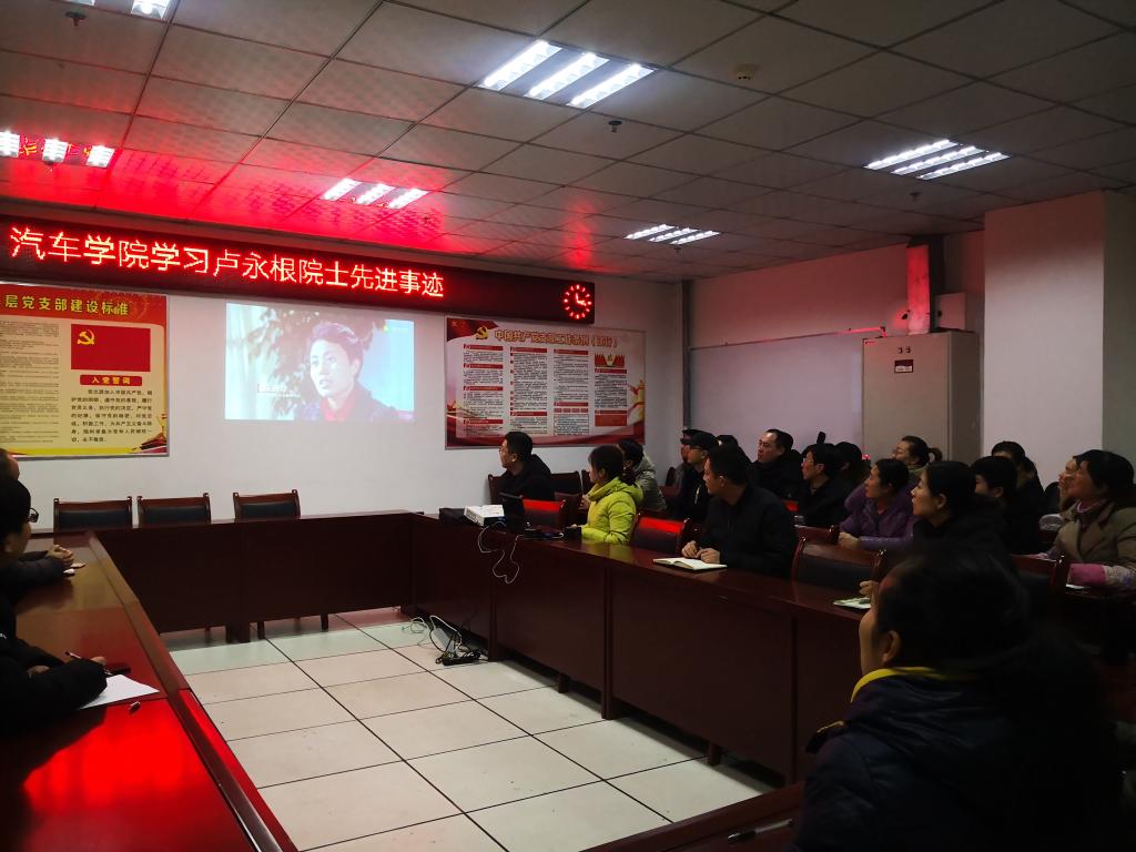 在会上,黄振虎副主任向院部全体教职工介绍了卢永根同志的先进事迹,向全院师生提出了学习卢永根同志的号召。随后院部全体教职工共同观看了《2017年度感动中国人物颁奖盛典:桃李满天下 卢永根》。