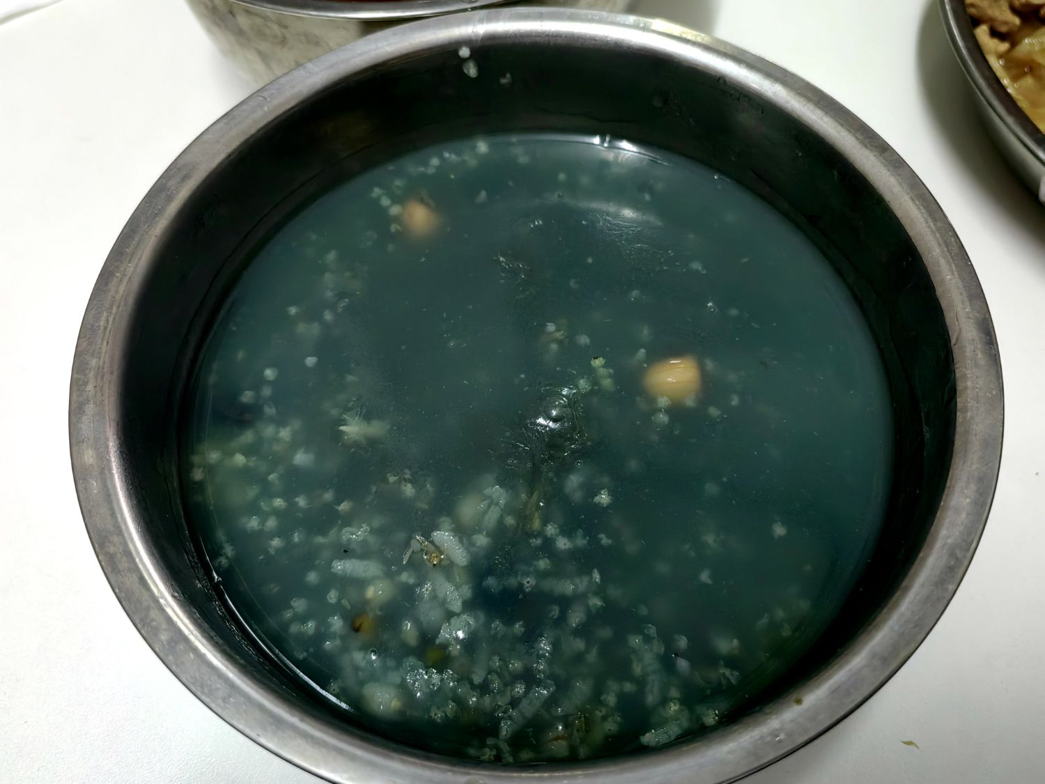 奇怪!好端端的麦仁紫薯八宝粥汤,熬成了绿色的,敢喝吗?