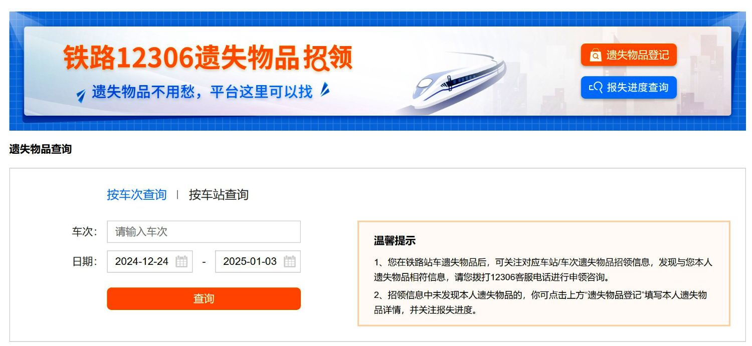 因为中国铁路12306平台有“遗失物品查找”的温馨服务栏目。