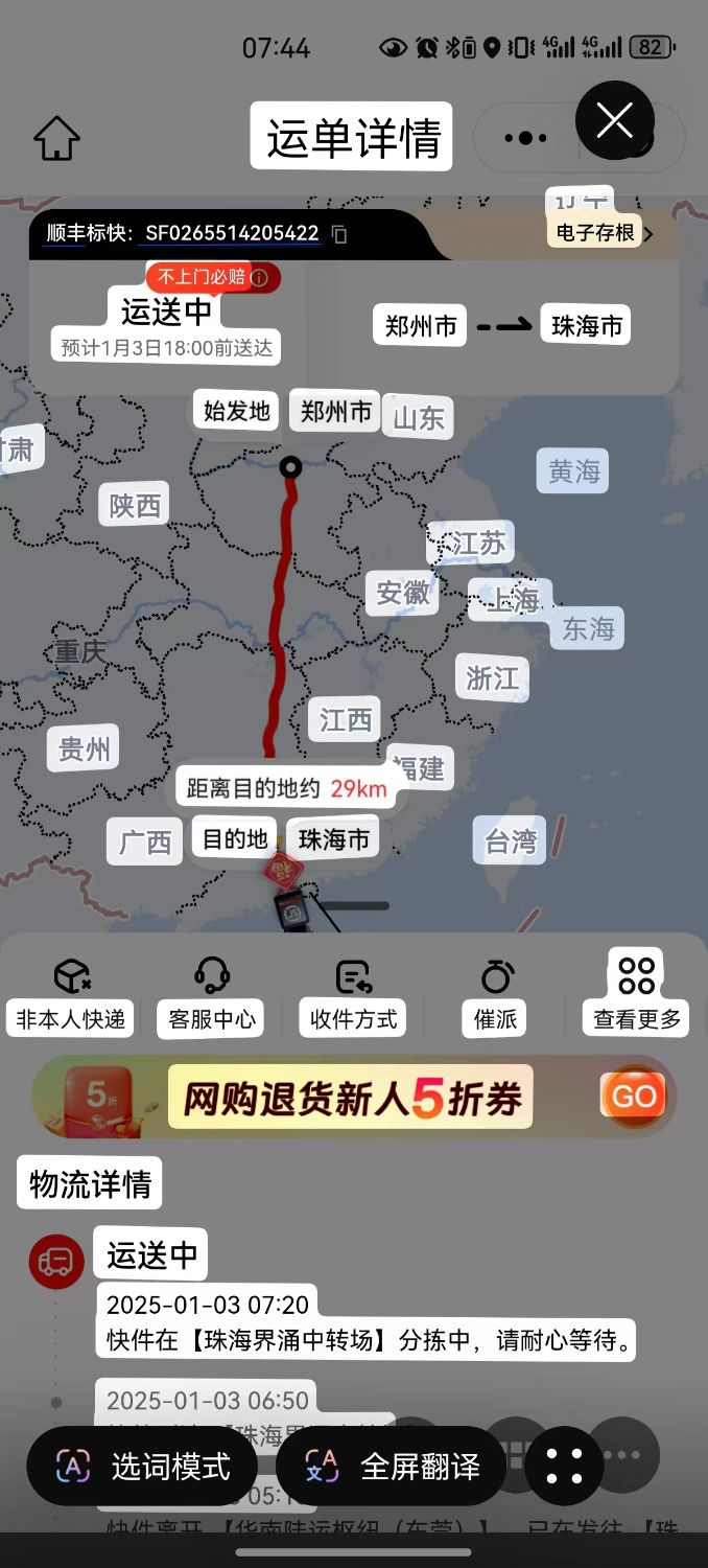 2025年1月1日12:40,杨乐乐往横琴顺丰快递了手提电脑。