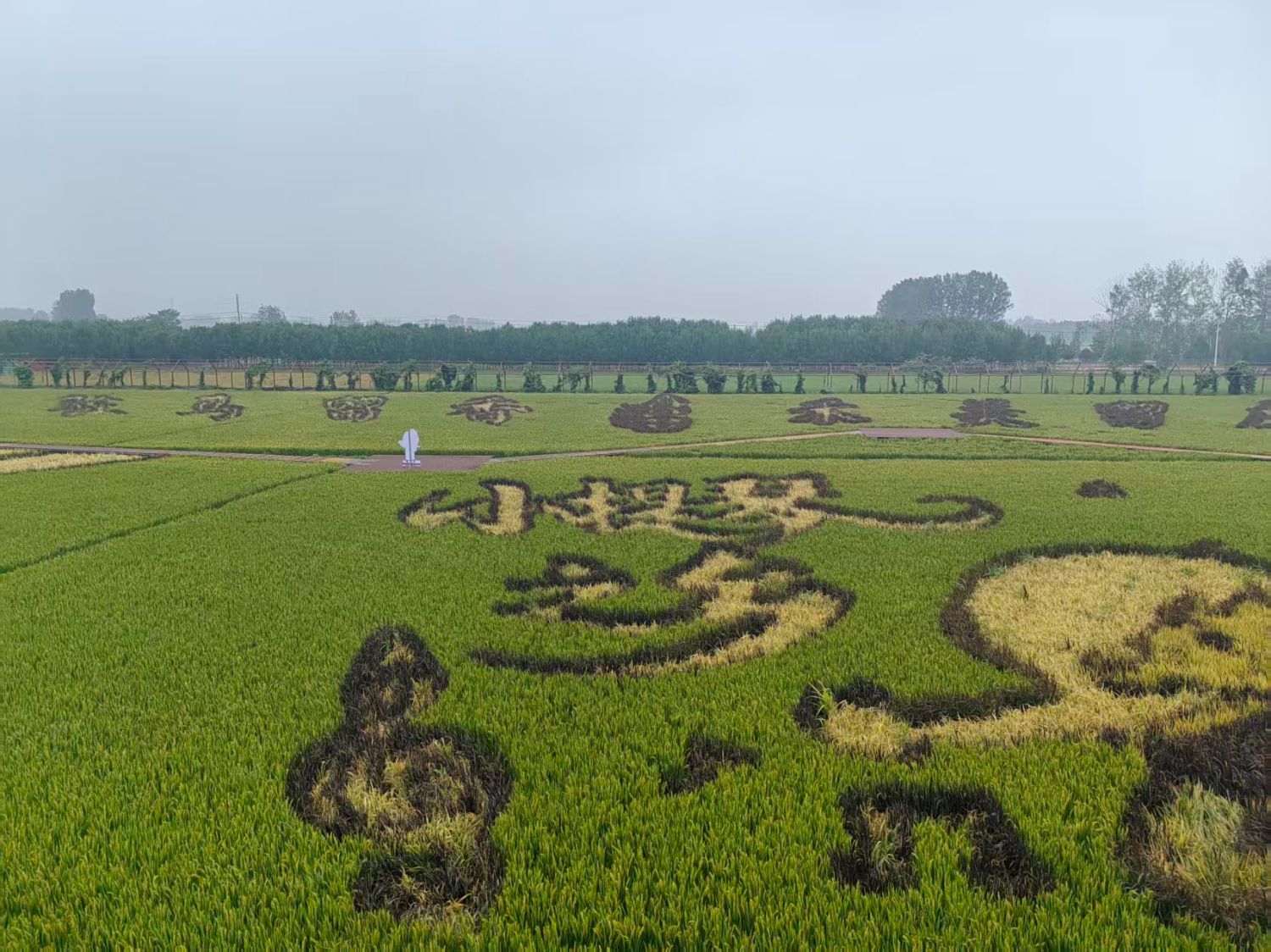 这里不仅有自然之美,更是现代农业文明和农耕文化的厚重沉淀。登高远眺,画一样的稻田,组合成不同的图案,让人触摸到岁月的温度。