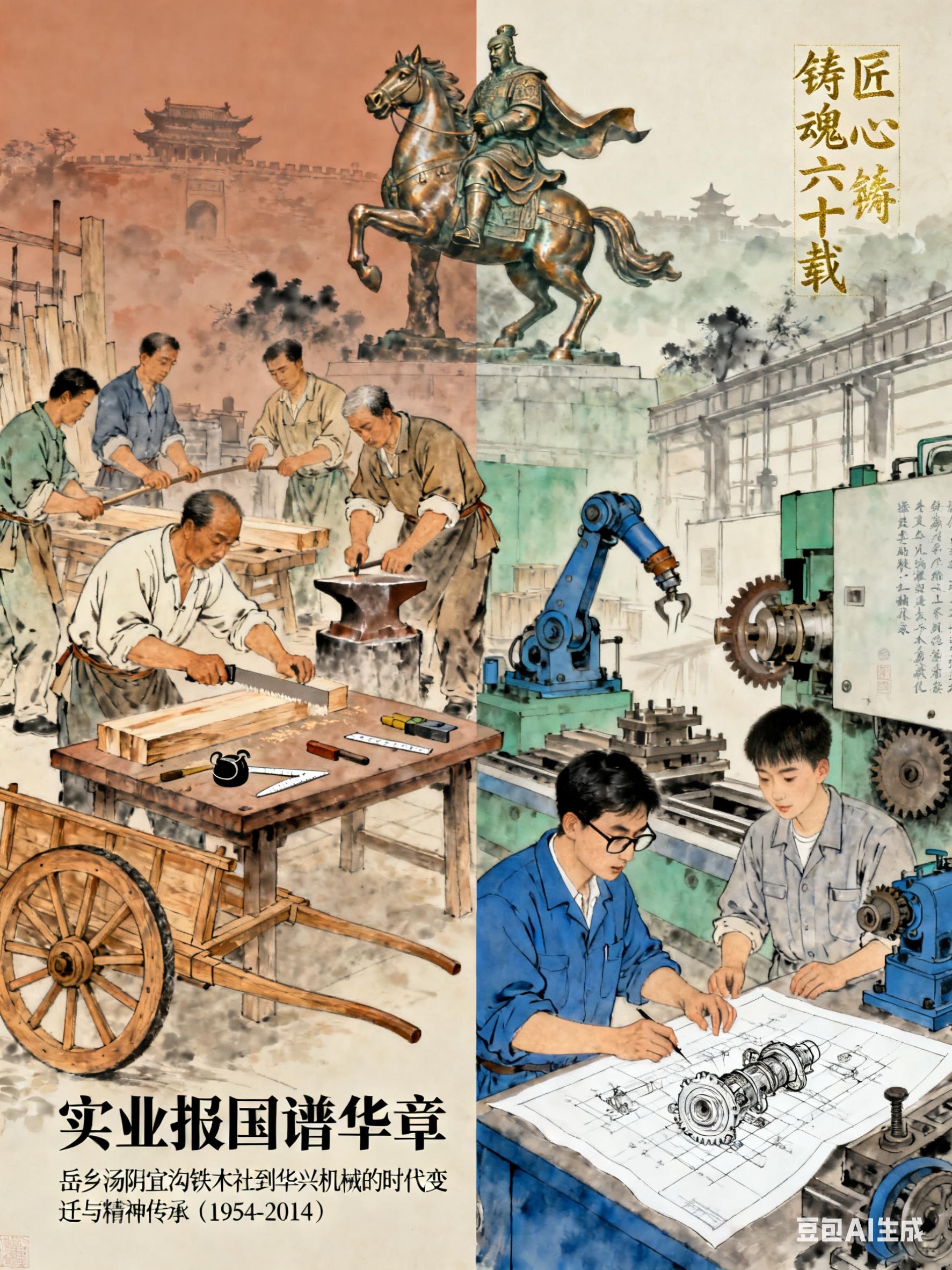2023 年 2 月,侯银海。他把使用了 30 年的 150 mm 老游标卡尺磨得发亮,刻上一行小字——“技艺精·劳动美”,捐赠给学校实训中心。有人问他:“老侯,你这一辈子最大的成就是啥?”他指着生铁库方向笑:“把别人眼里的废铁,变成国家需要的机器;把‘劳动’两个字,刻进更多年轻人的心里。”如今,汤阴县汽车配件厂早已更名为“华兴机械制造有限公司”,可生铁库还在,寻宝的人还在。每当晨雾升起,总有人看见一个穿蓝色工装、背游标卡尺的老人,在废铁堆里弯腰、敲打、测量——像一位虔诚的考古学者,又像一位不知疲倦的园丁,悄悄唤醒沉睡的钢铁,也悄悄唤醒“技艺精·劳动美”的不灭薪火。