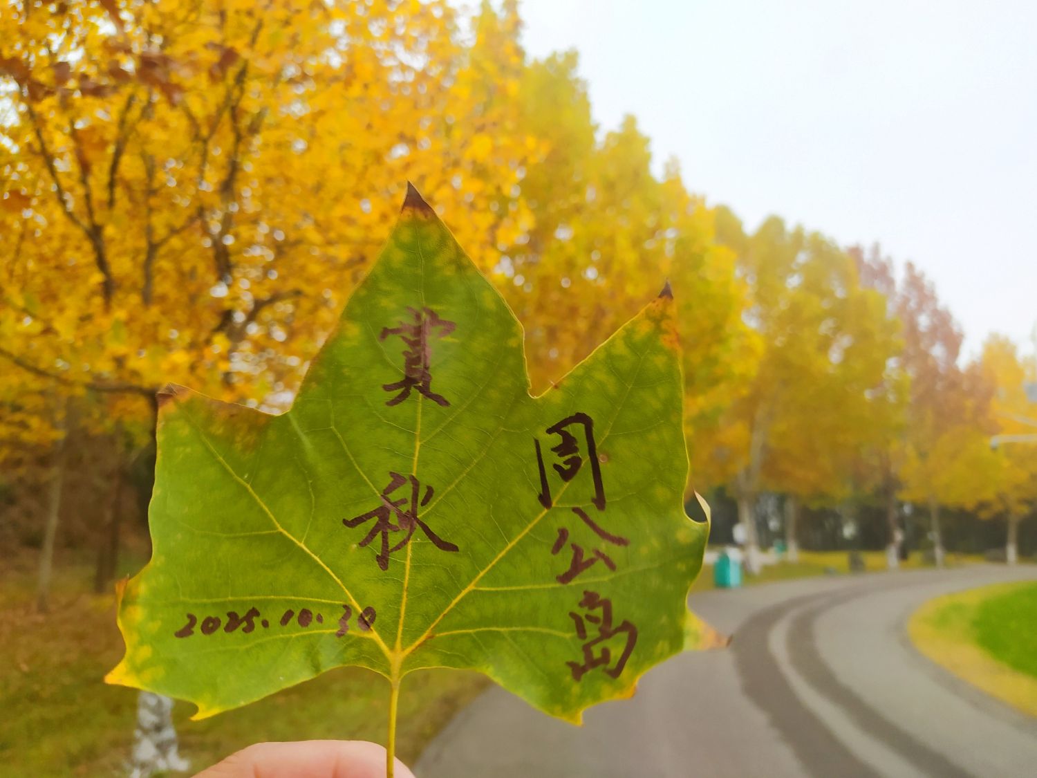 此时,周公岛上已是绚丽多彩的梦幻世界。金黄色的悬铃木掩映大道两边,更有那金黄的银杏叶、火红的枫叶、暗红的柿树叶等等,不甘寂寞,尽情地展示着独具绚丽多彩特色的一面。林中尚有许多不知名的树木在风中摇曳着,叶片招展,或红或绿或黄,晕染成了一片,交织在了一起,好像展开了一幅美轮美奂的油画一般。观之望之,我不禁恍惚起来,那秋色仿佛凝固了一般,凝固成了一首妙不可言的秋天的诗章;观之望之,那秋色仿佛又流动了起来一样,诗韵和着绚丽多彩的色调浸染着我的心灵,那一刻,我仿佛沉醉了一般。