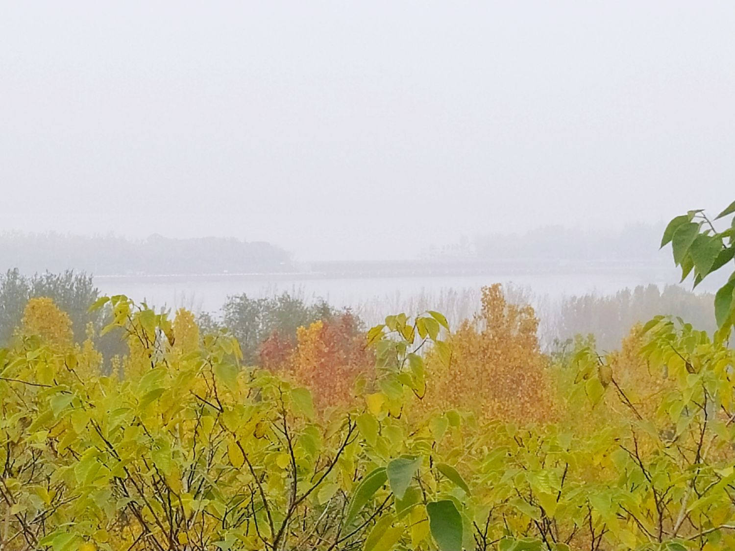 “山明水净夜来霜。数树深红出浅黄。”雾气朦胧,天地苍茫,浓浓秋色被雾气稀释,渐渐晕染开来,绚丽多彩的世界在我们面前渐次展开。当雾气渐渐散去,雾气又凝结为花草上的晶莹露珠。我按耐不住赏秋的兴致,一路朝着秋意醉人的周公岛奔去。