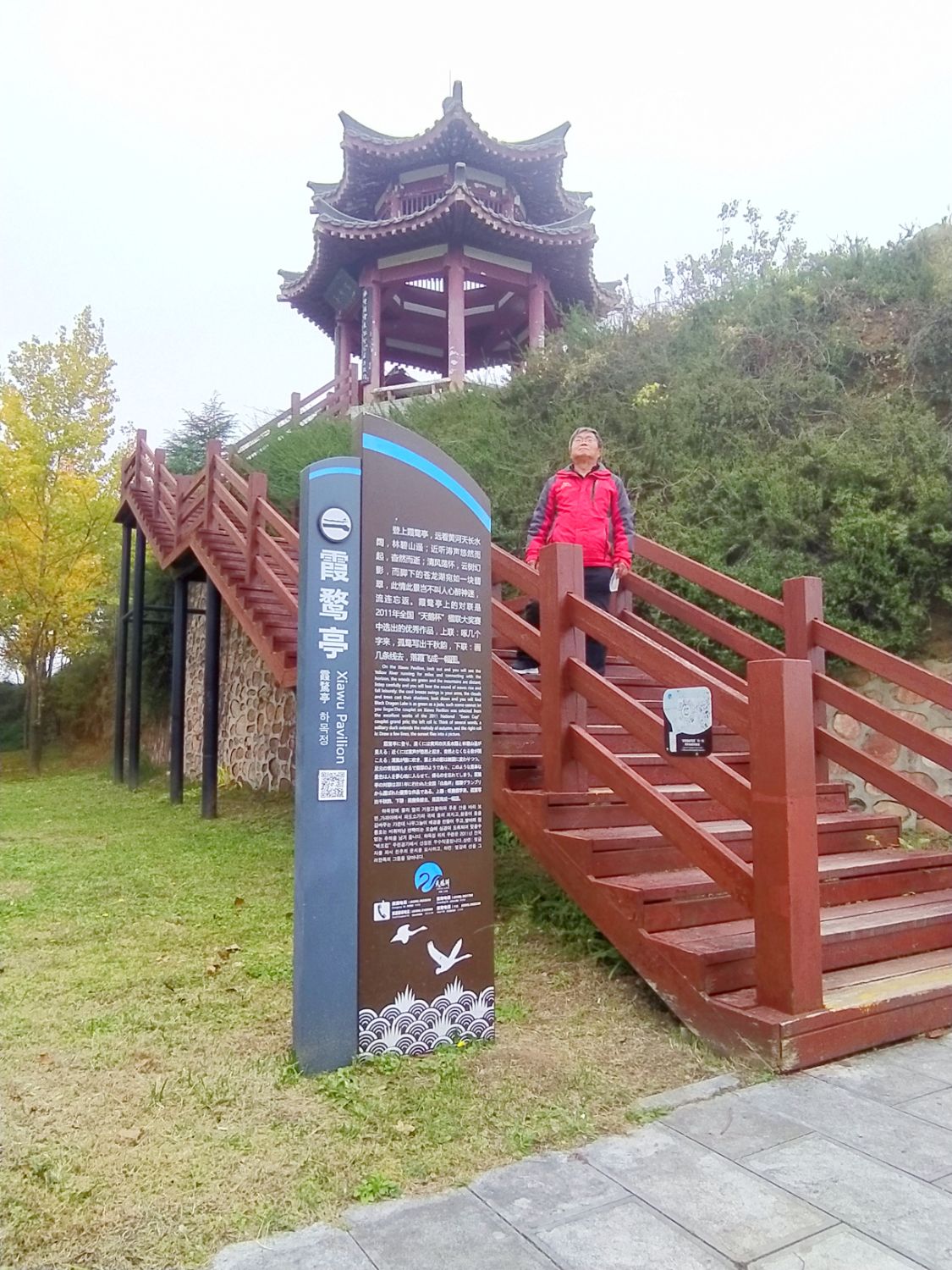“金风细细,叶叶梧桐坠。”沿着木栏台阶,登上了霞鹜亭,但见眼前呈现出了如梦似幻的世界。在苍龙湖上,远处成群的白天鹅游弋水中,偶尔有一队“白衣仙客”从头顶掠过,金色的秋林映衬着洁白的点点“白衣仙客”,俨然成为霞鹜亭上最抢眼的风景,霞鹜亭,果真是名不虚传,名副其实。在亭子上,可以观到落霞与“白衣仙客”同框的画面,真是赏心悦目,心旷神怡,王勃的那句“落霞与孤鹜齐飞”,在这里被彻底具象化了。在霞鹜亭上凭栏眺望,远处的迎祥阁若隐若现,在金秋的绚丽多彩背景下,更透露着几分神秘。眼前,炫目的多彩秋林已是弥漫一片,绚烂多彩,醉人心扉。
