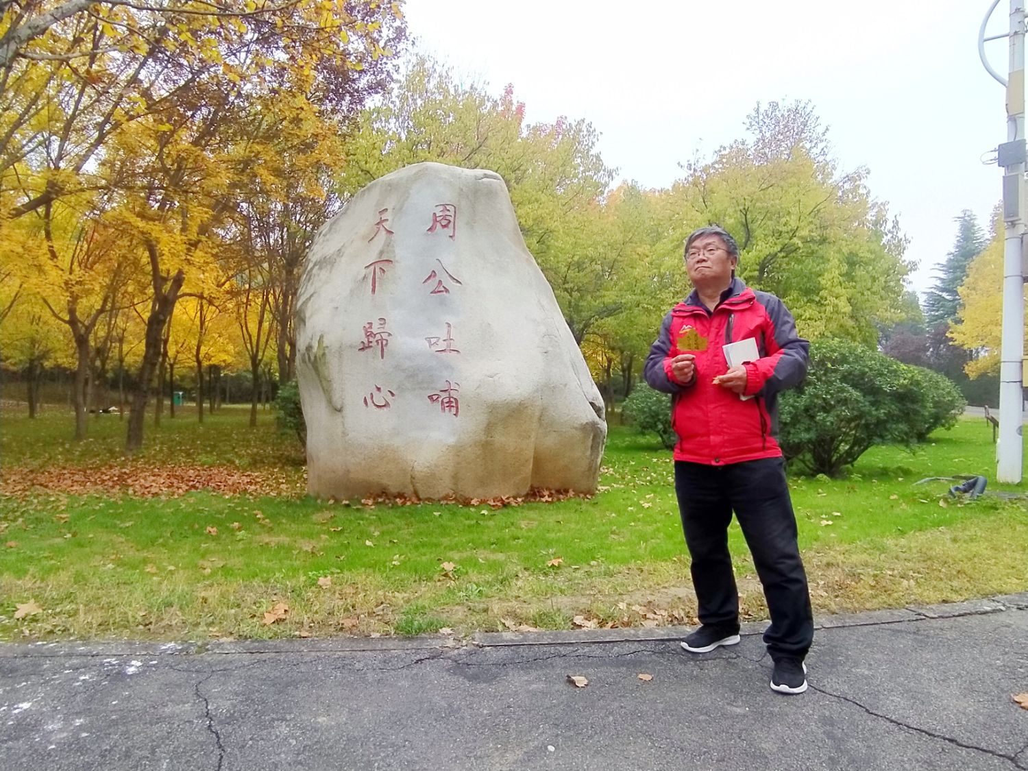 枫树林里,枝叶在阳光下闪着金光,片片落叶铺满树下,置身此间,仿佛进入了一个绚丽多彩的梦幻世界,令人产生了“不知今夕是何年”的感觉。“周公吐哺,天下归心”。在母爱广场斜对面的一块大石头上,赫然刻着曹操的著名诗句。周公为人兢兢业业,勤勉不辍,得到了后人的敬仰和赞美。周公自幼贤孝聪慧,多才オ多艺,武王伐纣中《牧誓》即为周公所作。武王伐纣后两年过世,成王年幼,正是由周公摄政当国,治理国家。周公主张“明德慎刑、敬德保民、有孝有德、力农无逸”,他的言论散见于《尚书》、《大浩》中,成为儒家学说的起源,他一生的文治武功对后世产生了深远影响。