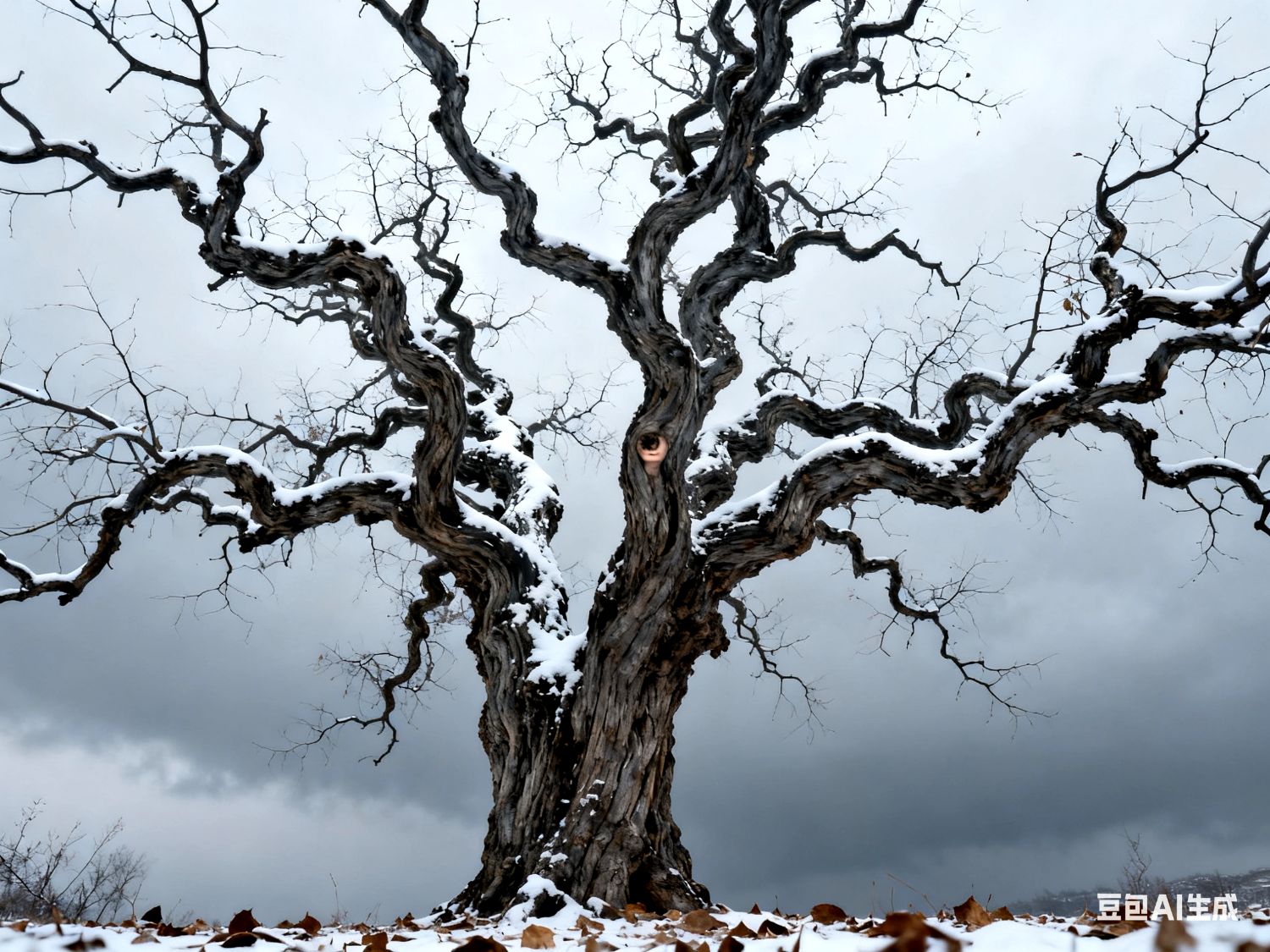 站立树下,观之愈久,使人会联想到生命的丰盈与坚韧,仿佛隐隐约约地听见,在这天寒地冻雪野的深处,正回荡着一曲生命不屈的雄浑强音。