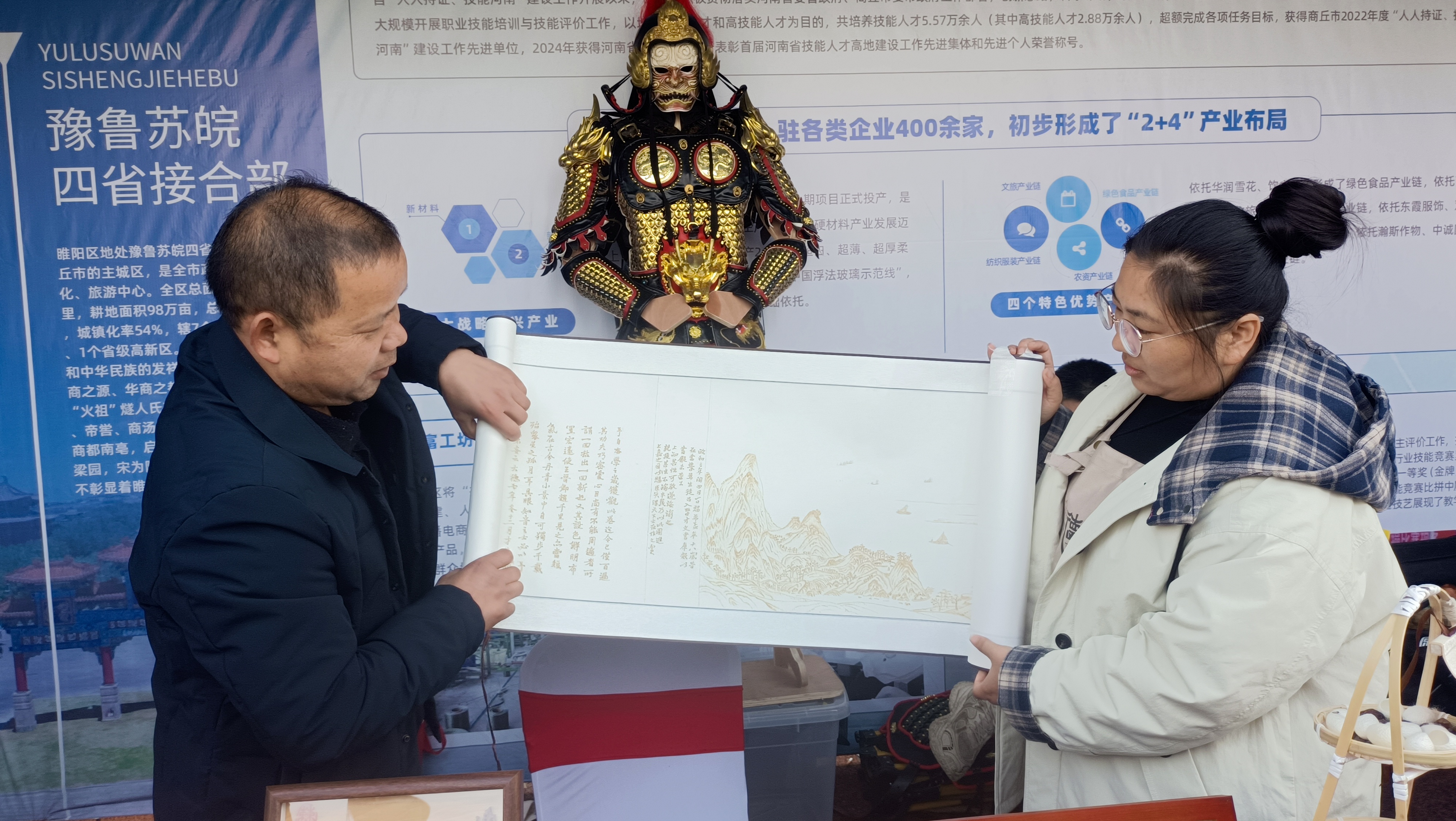 技能展示展演现场更是精彩纷呈,几十种技艺同台亮相、各展风采。非遗传承人们坚守匠心,归德剪纸的精巧灵动、归德魏木版年画的古朴厚重、曹氏木雕画的细腻传神、非遗葫芦烙画的韵味悠长令人沉醉;柘城李秀山泥塑、晴岚农民画、麦草画等省级非遗项目尽显地方文化底蕴,王氏糖画、传统古法制皂、毛笔制作等传统技艺让观众重温老手艺的温度。与此同时,现代技能展示同样吸睛无数:无人机装调维修与花样飞行展现科技活力,果蔬雕刻、中式糕点制作彰显生活美学,婴儿抚触、儿童心肺复苏、海姆立克急救技术等康养技能传递专业守护,新娘造型盘发、化妆技能展演、花艺调酒等时尚技艺演绎潮流风采。