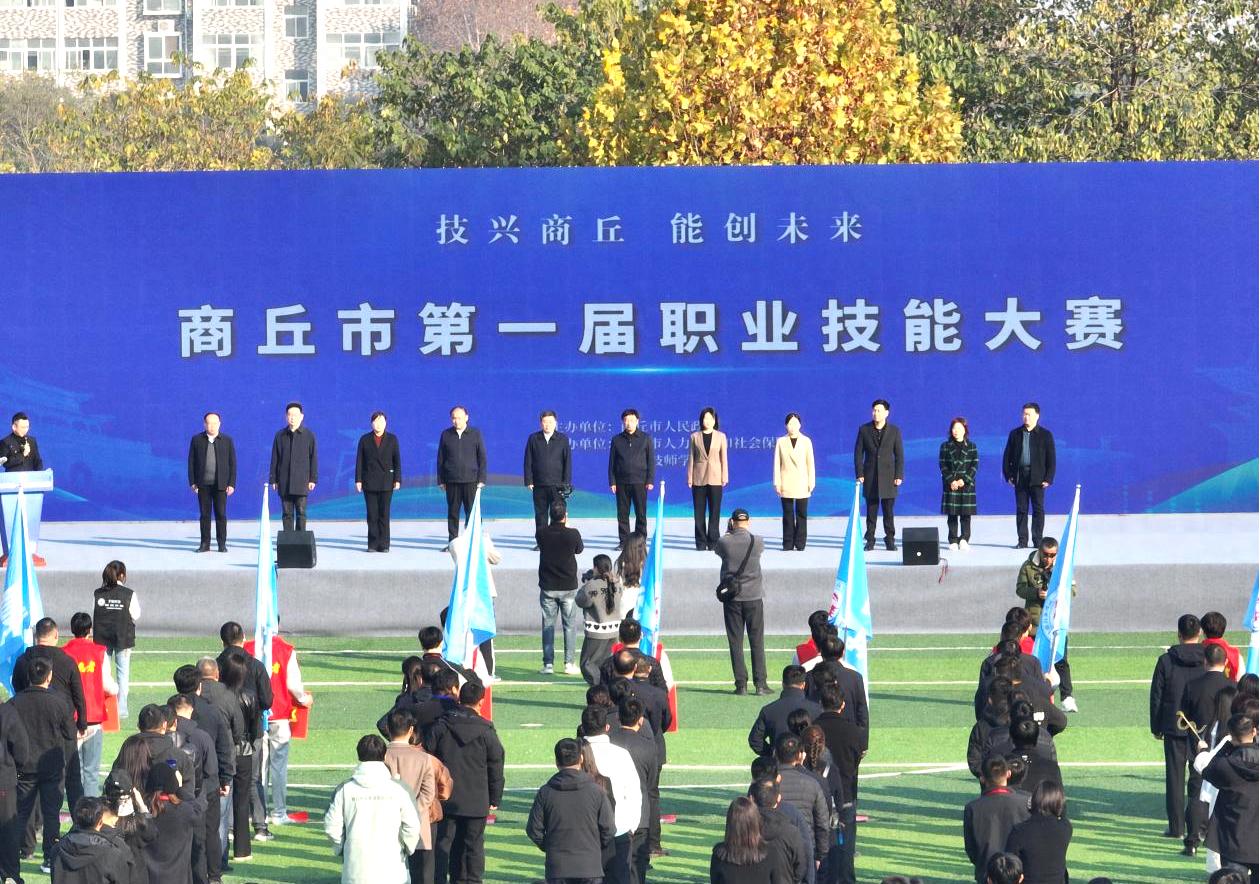 职业教育育英才,技能竞赛展锋芒。11月21日,商丘市第一届职业技能大赛暨“秀技艺·亮绝活”技能展示展演交流活动在商丘技师学院隆重启幕。本次大赛由商丘市人民政府主办,市人力资源和社会保障局与商丘技师学院共同承办,以“技兴商丘 能创未来”为主题,旨在全面落实全国及全省教育大会精神,坚持以赛促教、以赛促学,进一步推动职业教育高质量发展,为区域经济社会高质量发展注入技能动能。