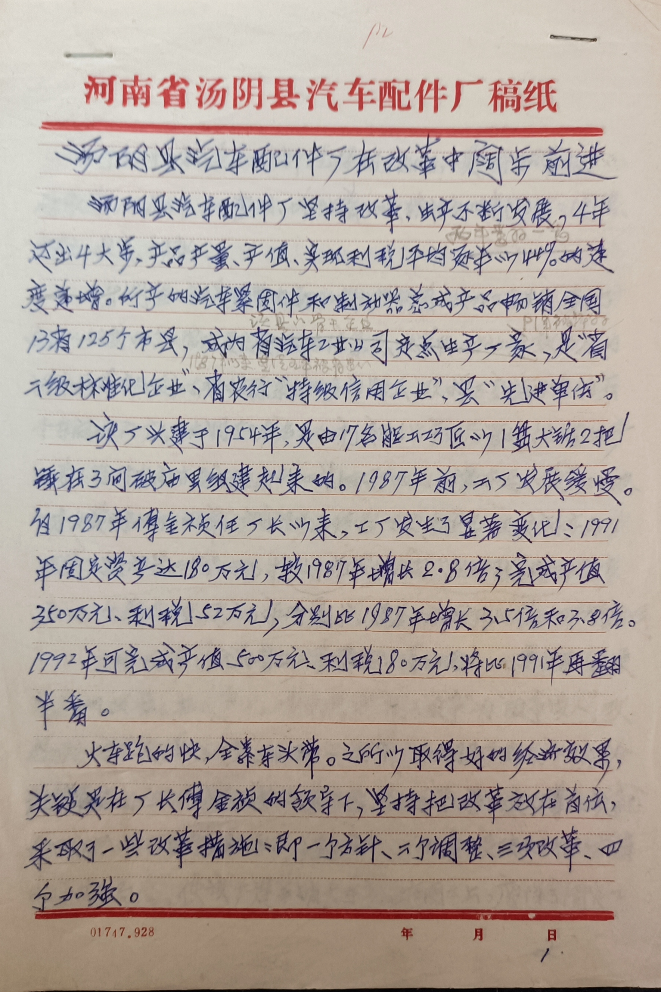(背景延伸:汤阴县汽车配件厂在改革中阔步前进)