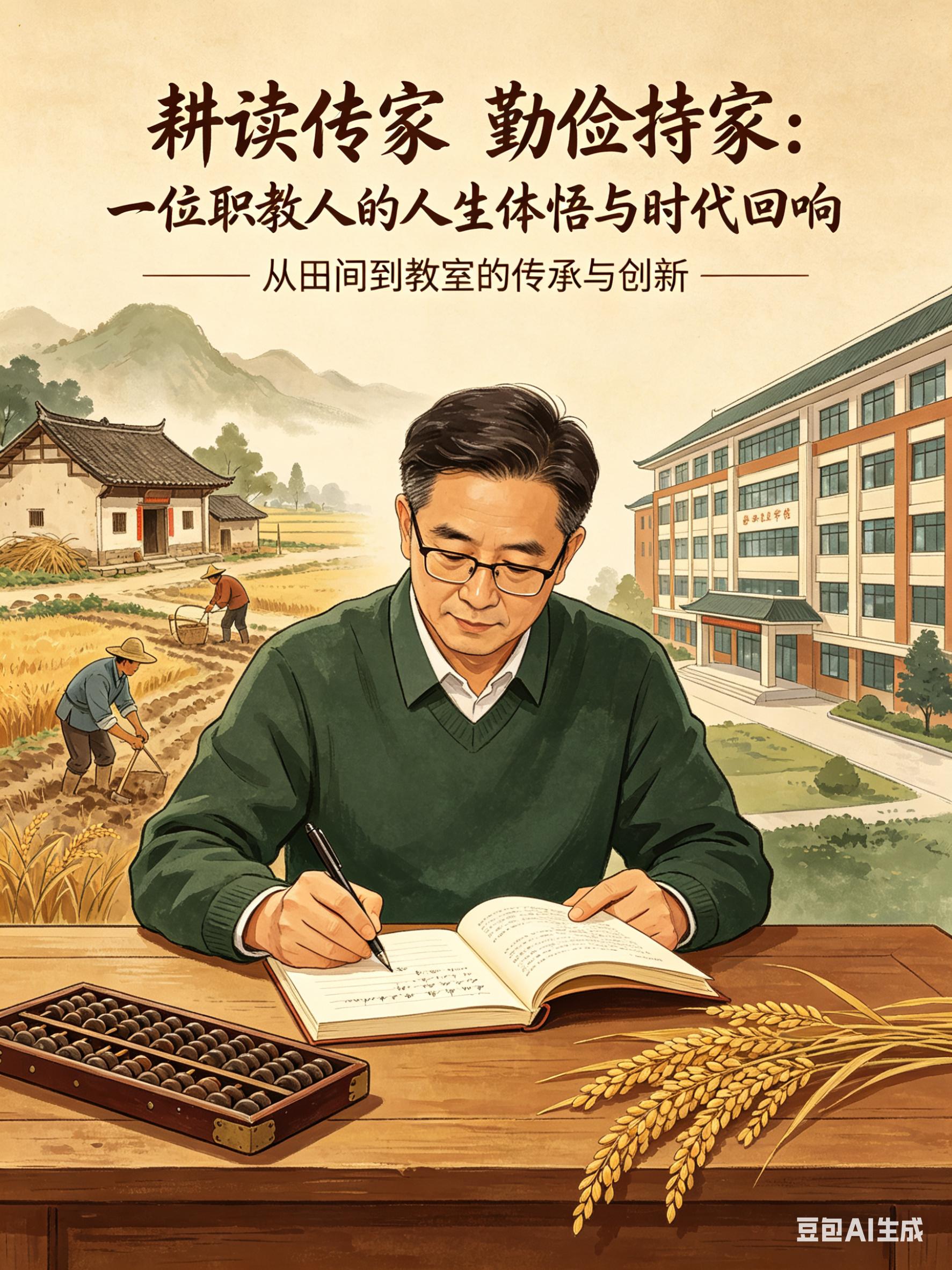 “耕读传家,勤俭持家”,这不仅仅是一句家训,更是一种生活哲学,一种人生智慧。它教会我们,在物质与精神之间寻找平衡,在勤劳与节俭中实现富足,在个人奋斗与家国情怀中成就自我。人到中年,我终于懂得,真正的“传家”之宝,并非金银财宝,而是这种融入血脉的精神基因——它让我们在纷繁复杂的世界中,保持内心的宁静与坚定,以勤俭为舟,以耕读为帆,驶向更加光明的未来。这,便是“耕读传家”的真谛,也是我作为一名职教人,愿意用一生去践行和传承的信念。