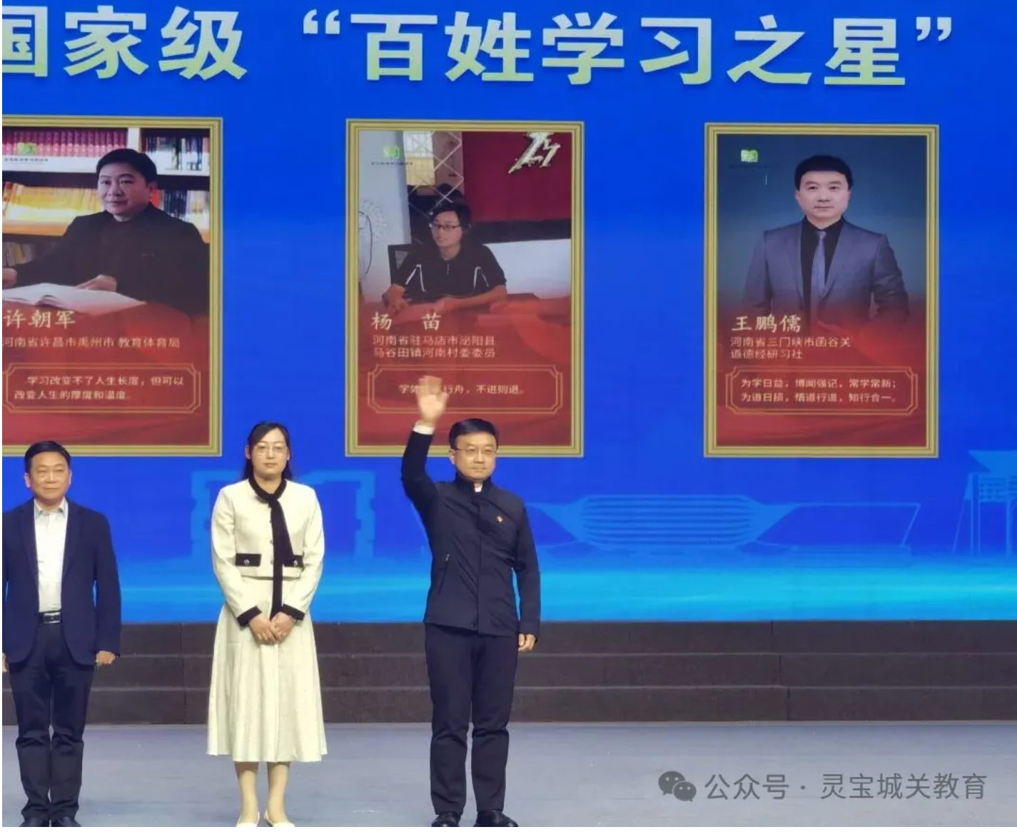 10月20日-21日,2025年河南省全民终身学习活动周开幕式在许昌隆重举行。河南省委教育工委副书记、省教育厅党组书记、厅长别荣海,许昌市委书记杨小菁出席开幕式,为2025年全国百姓学习之星颁奖。灵宝市城关镇中心学校教育总支书记、校长、函谷关道德经研习社社长王鹏儒凭借在道德文化传承与全民终身学习领域的突出贡献,荣膺全国2025年新时代“百姓学习之星”荣誉,并以《守正创新 传承经典》为题作现场交流发言。