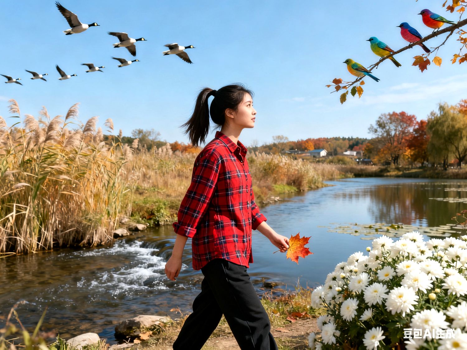 美在秋天 仰望碧空那一行行南飞的大雁 雁叫声声让人感慨万千 走在家乡的小河边 水流潺潺 池塘湖畔 菊花灿灿 枝头鸟语连连 令人流连忘返