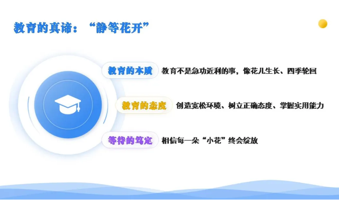 站在这方承载着希望的校园里,看着身边每一张满含热忱的脸庞,我总想起教育最本真的模样 —— 它像一片广袤的原野,我们既是播种者,也是守望者。今天,想借这个机会,和大家分享三句藏在教育时光里的心里话,愿我们一同从中汲取前行的力量。